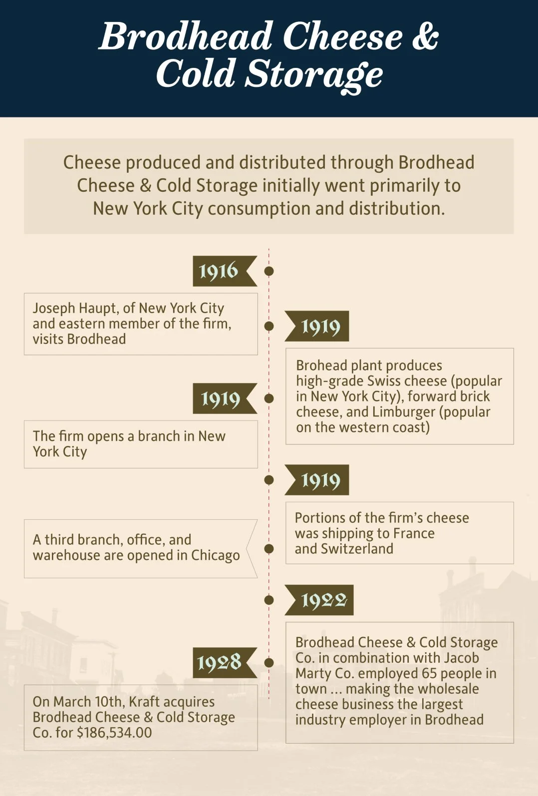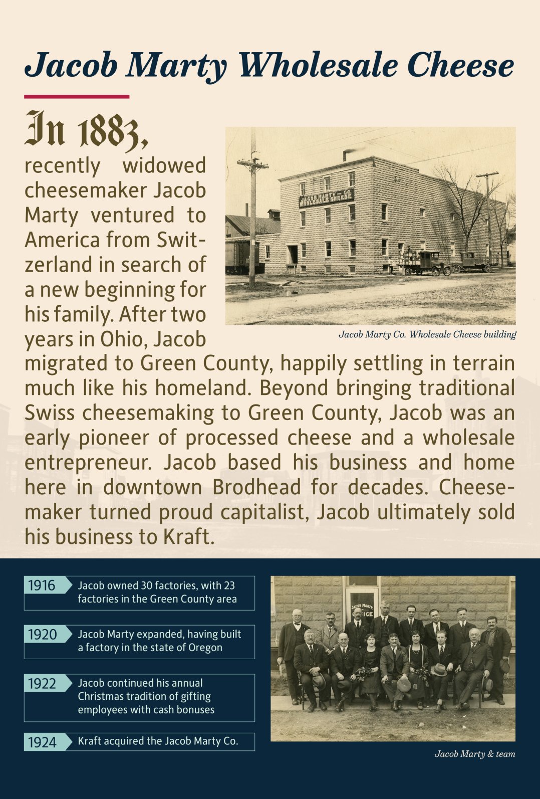 Custom museum display boards in collaboration with the Brodhead Historical Society & Museum for a permanent display showcasing the rich history of Brodhead cheese making.