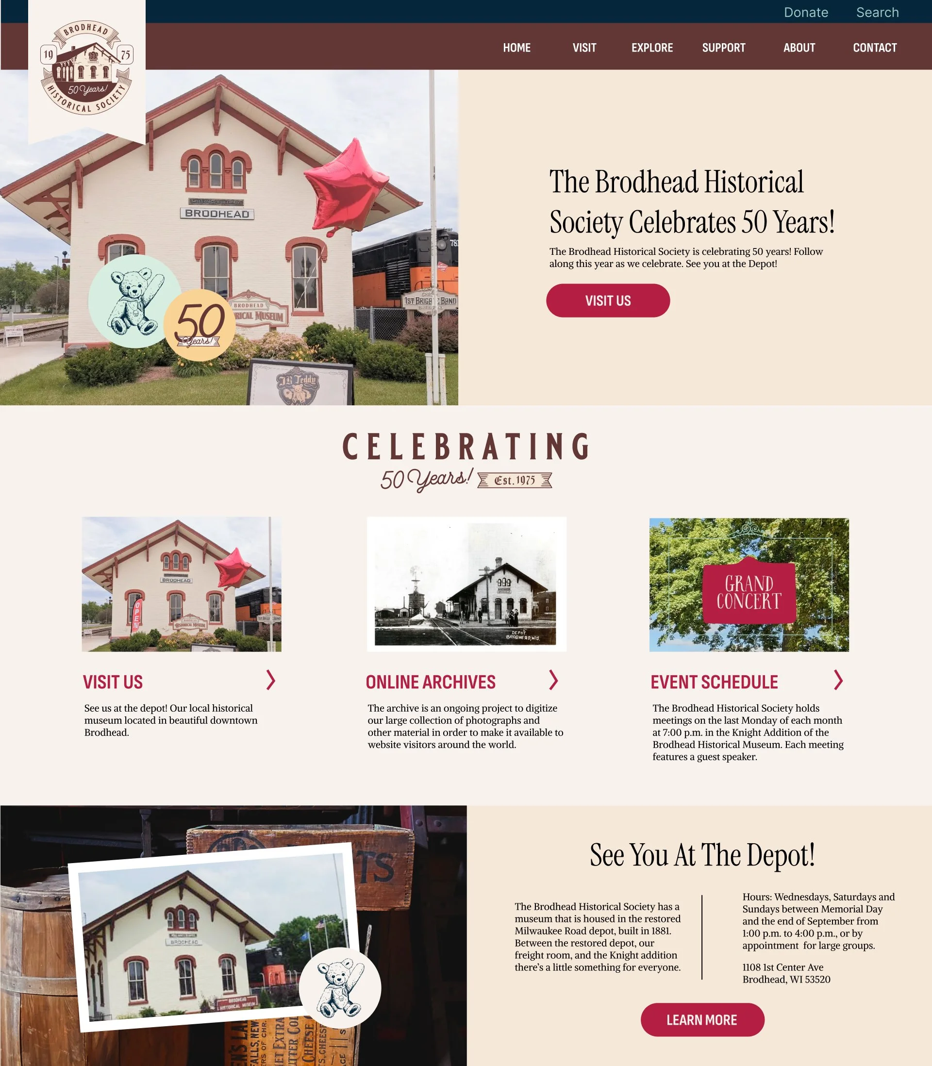 The Brodhead Historical Society celebrated 50 years and were in need of a fresh look. The historic train depot, which also houses their museum, is the main focus of the update. During both the passenger train days and now, the depot remains the heart of the historic town of Brodhead. Merging Victorian colors, elements and modern simplicity is what made this new look fit so well with a timeless feel to carry on for another 5o years!