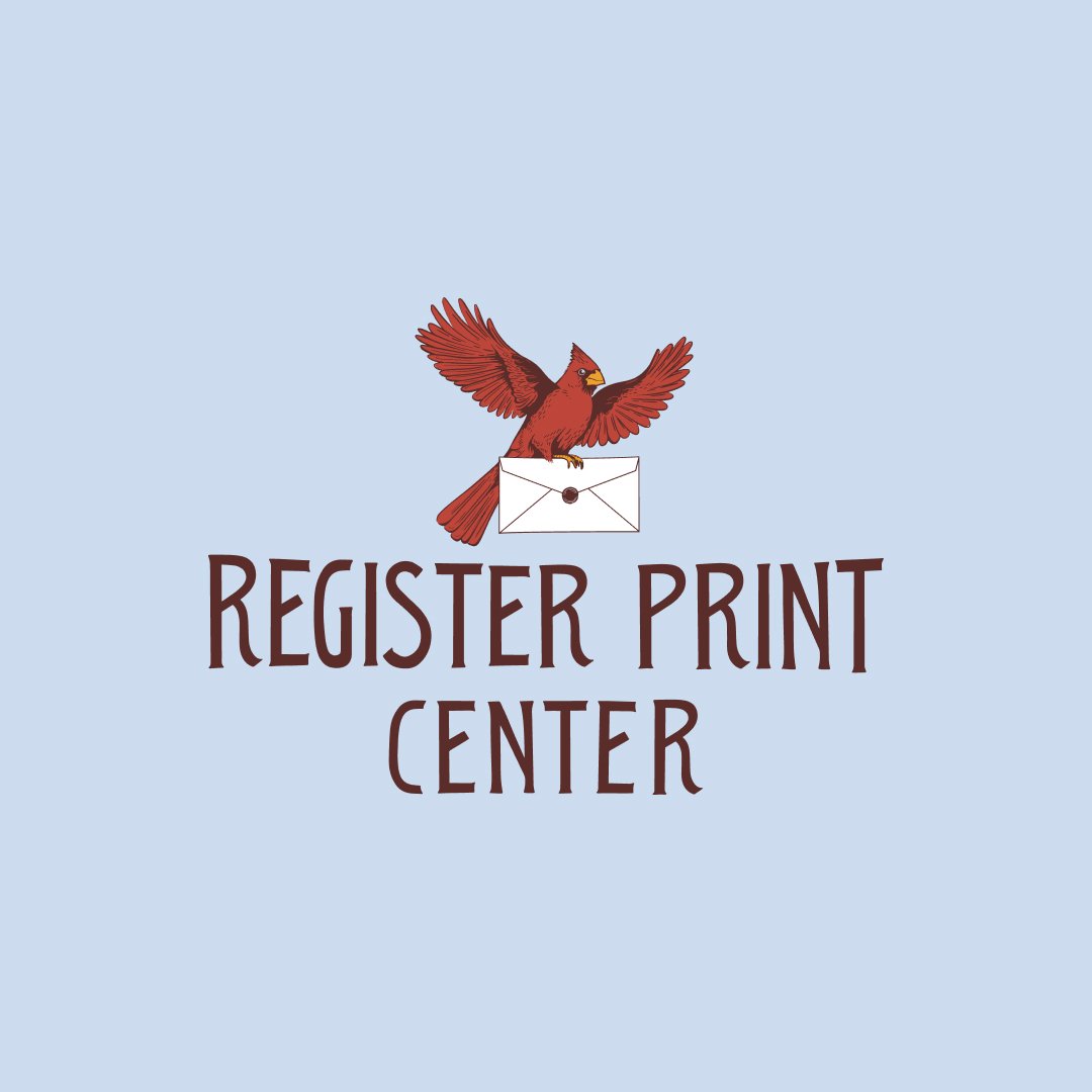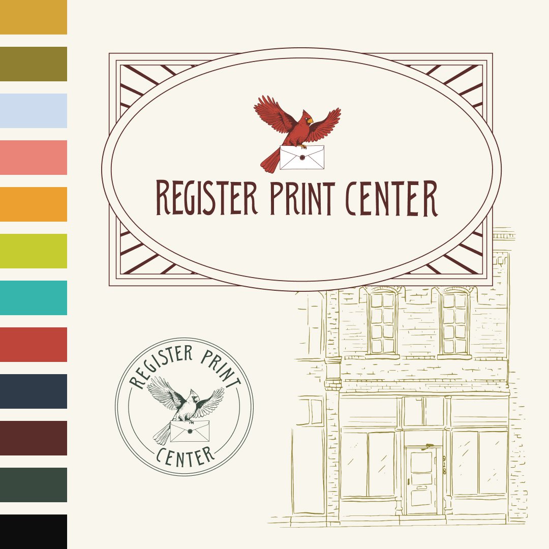 Branding and merchandising for the Register Print Center located in small historical town Wisconsin.